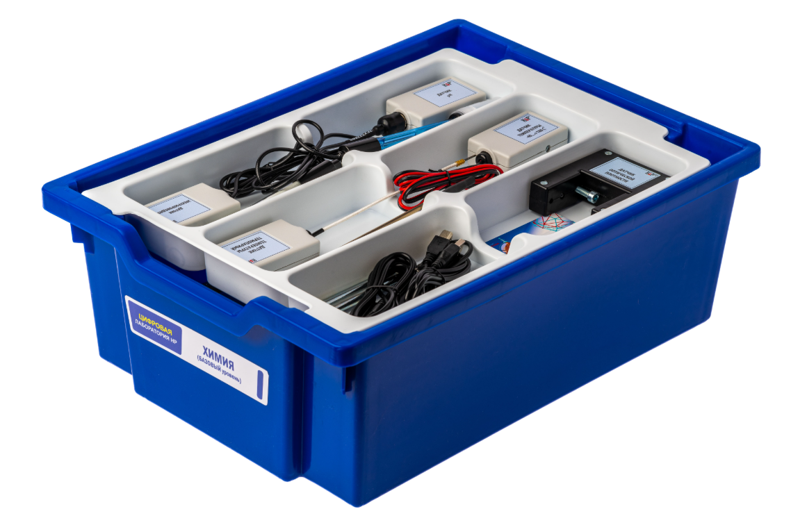 Цифровая лаборатория по химии – это комплект датчиков, на базе которых поочередно выполняются работы по измерению параметров окружающей среды и набор учебного оборудования, необходимого для выполнения химических опытов.