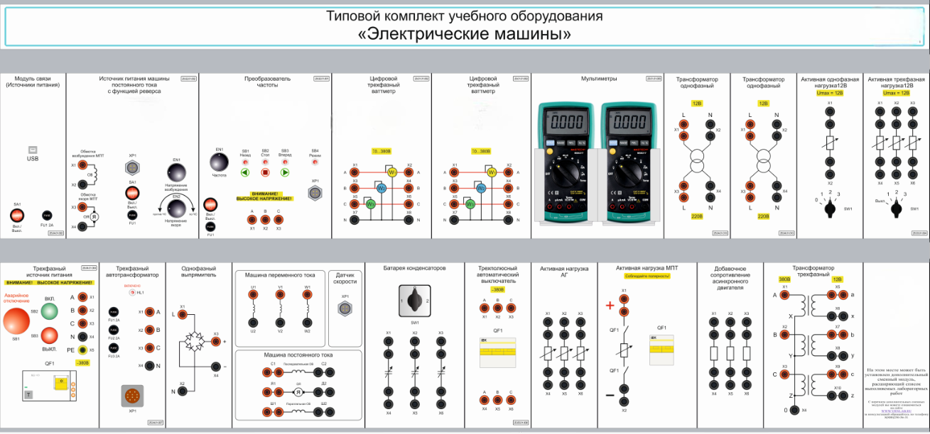 Типовой комплект учебного оборудования «Электрические машины» предназначен для проведения лабораторно-практических занятий в учреждениях начального профессионального, среднего профессионального и высшего профессионального образования, для получения базовых и углубленных профессиональных знаний и навыков.