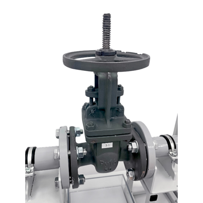 Стенд позволяет на практике изучить конструкцию клиновой задвижки, выполнить демонтаж/монтаж задвижки на участок трубопровода, заполнить трубопровод жидкостью и провести опрессовку для проверки герметичности.